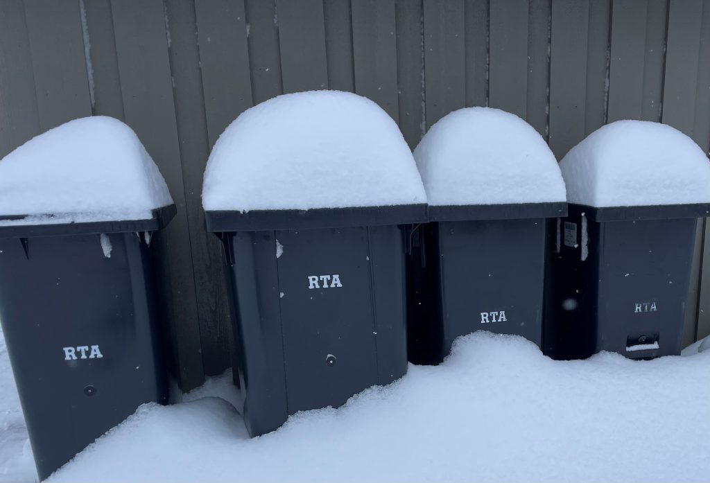 Rydd vekk snøen og se til at de står riktig plassert ved vei før tømmedag.